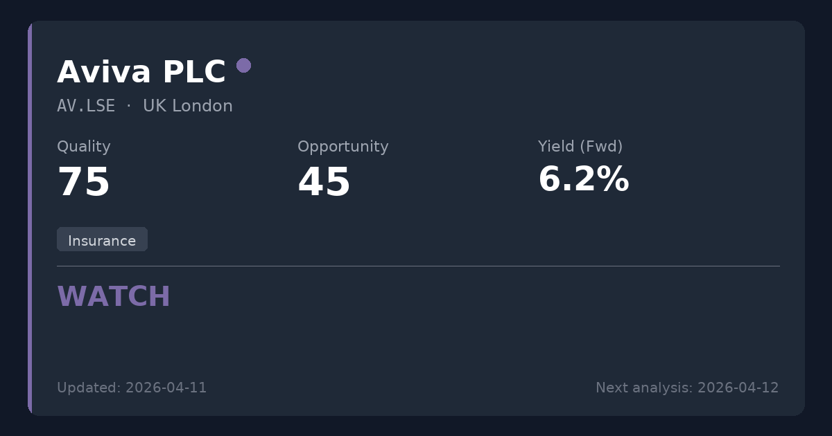 Aviva PLC is a leading UK-based multinational insurance company offering life insurance, general insurance, and asset management services. In the insurance sector, statutory accounting (like IFRS) can significantly distort short-term earnings due to mark-to-market asset valuations, making underlying cash generation and regulatory capital ratios (like Solvency II) more critical metrics for assessing true dividend sustainability.