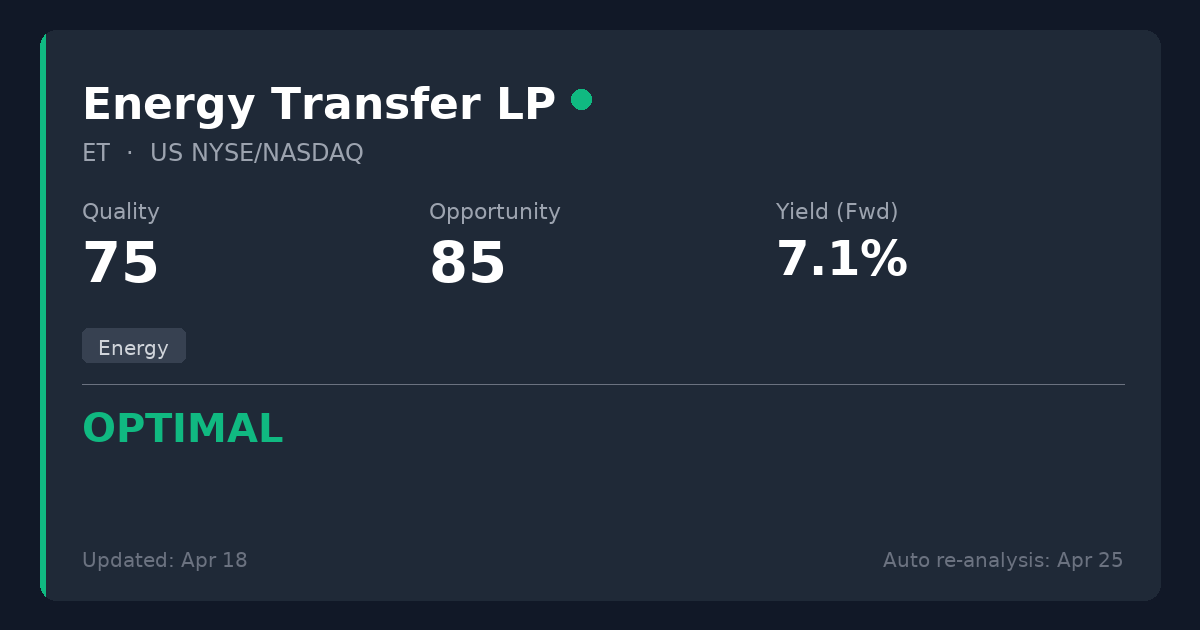 Energy Transfer is a master limited partnership (MLP) operating one of the largest midstream energy portfolios in North America, transporting natural gas, crude oil, and NGLs through an extensive pipeline network. In the midstream sector, companies generate stable, fee-based revenues that act like toll roads, making them highly suitable for dividend strategies, though heavy capital expenditures and depreciation often distort standard GAAP P/E and payout ratios, making P/FFO and Cash Flow Payout the most accurate metrics.