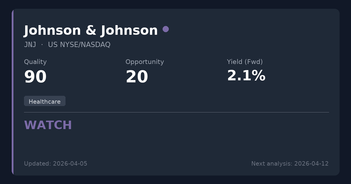 Johnson & Johnson is a premier global healthcare leader with exceptional financial stability, a fortress balance sheet, and a long history of safe, growing dividends. While the fundamental business quality is outstanding, current pricing around $243 (P/E 22.0) and a low 2.11% dividend yield offer limited upside for new capital. Existing shareholders should maintain positions given the strong fundamentals, but new investors may want to wait for a better entry point.
