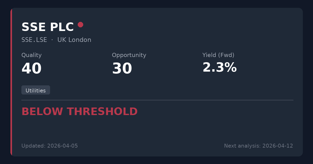 SSE PLC operates high-quality, essential electricity networks, but its massive capital expenditure requirements for the energy transition make it unsuitable for conservative income strategies. With a yield of just 2.41%, negative free cash flow, and a history of strategic dividend cuts to fund growth, the income stream lacks the required stability. Not recommended for new positions as better yield and coverage opportunities exist elsewhere in the sector.