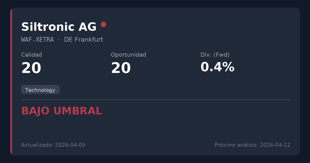 Siltronic AG es un importante fabricante global de obleas de silicio ultrapuro, que suministra los materiales fundamentales utilizados por la industria de semiconductores para crear microchips. Esto sitúa a la empresa en el sector Tecnológico, el cual es altamente cíclico, intensivo en capital y está sujeto a rápidas correcciones de inventario, lo que lo hace fundamentalmente incompatible con estrategias que buscan flujos de caja estables y predecibles para obtener ingresos por dividendos fiables.